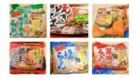 業務スーパーインスタントラーメンの種類は、醤油・魚介豚骨醬油・塩・味噌・焼きそば・激辛の6種類となります。