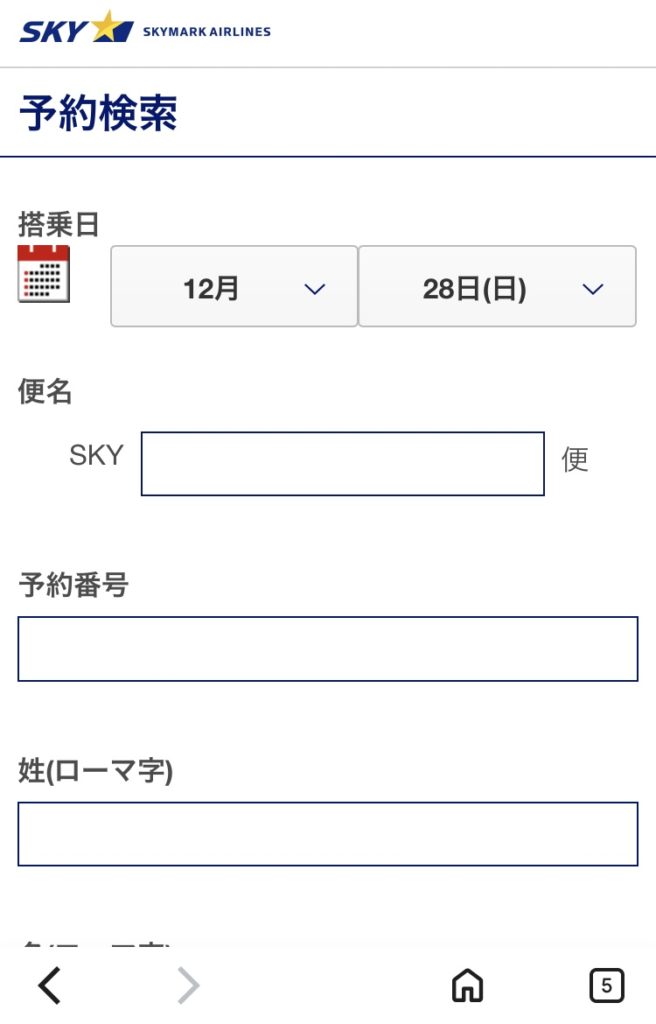 よく「便番号(3桁)」「予約番号(4桁)」を入力したのに、「搭乗日」の設定を変えてなくてうまく予約ページに入れないことが多いです。