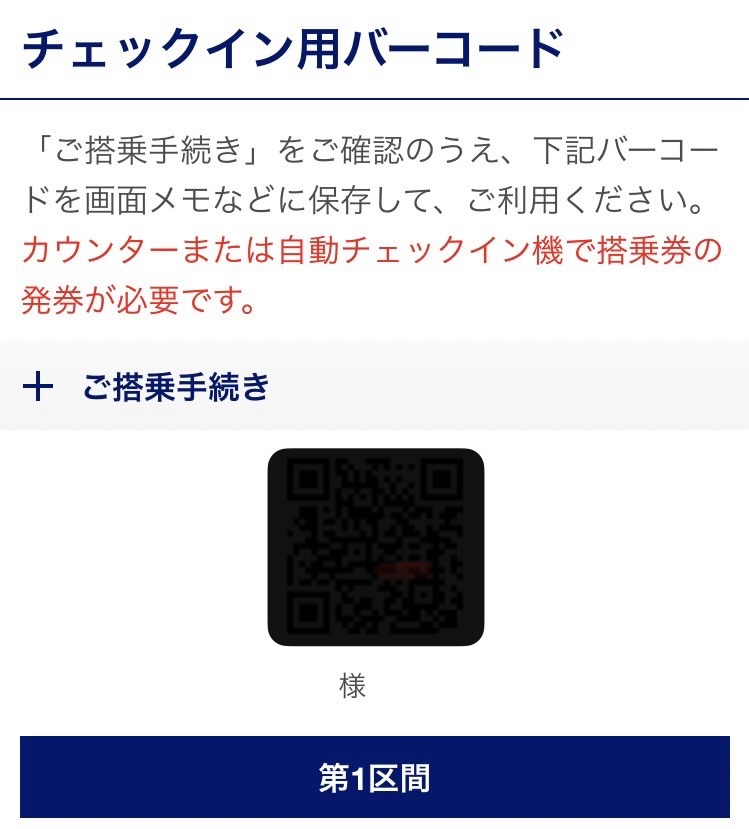 もう一度、予約確認ページに飛び「チェックインコードを表示」を押します。