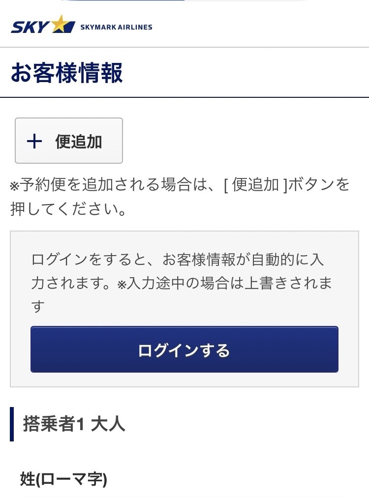Screenshot ①搭乗者の情報を入れる①搭乗者名(ローマ字)