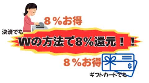 買い物の予定がない方は、ギフトカードを購入して8%キャンペーンを”最大300円分”うまく活用していきましょう。