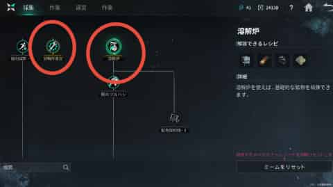 ここではゲームを進めていく上で必要になってくるレシピを解放することができます。