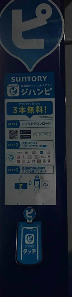 ジハンピアプリはサントリー自販機専用のアプリとなります。