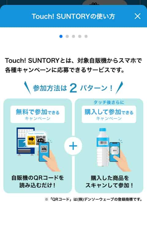 QRコードをスキャンすると「Touch!SUNTORY」という公式LINEミニアプリに飛びます。