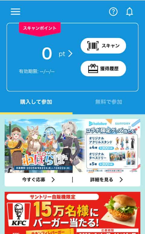 自販機のQRコードをスキャンした後、ポイントで応募する必要があるため、在庫がなくなる前に応募しましょう!