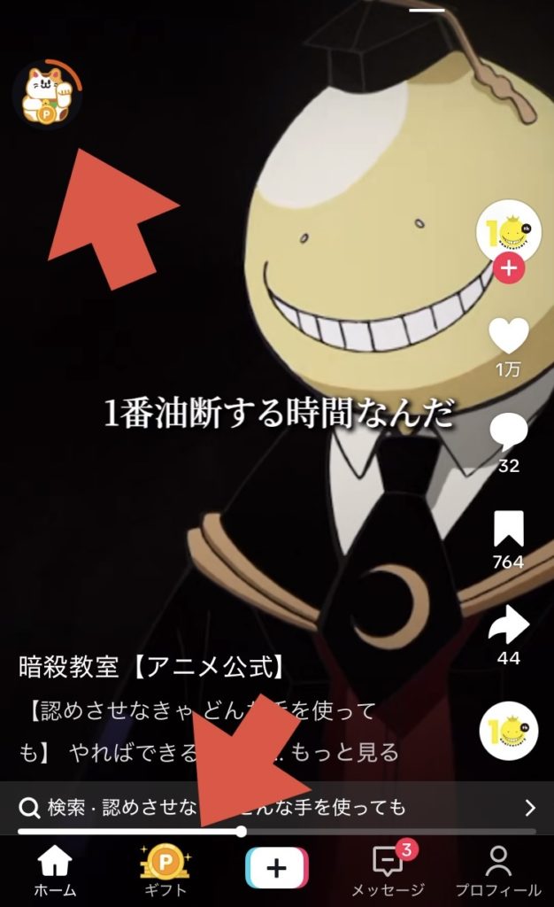 ②ホームのまねきねこを押す本来なら①の「ギフト」を押すことでギフト画面に移行できます。