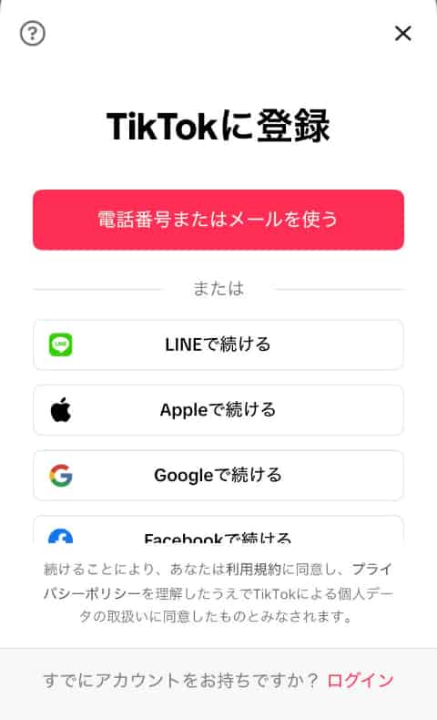 TiktokライトだけでなくTiktokのアカウントで登録するのもやめましょう。