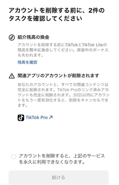 ②Tiktokライト・Tiktokアカウントの登録を削除する