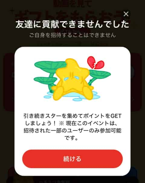 共有リンクは1度使ったものを押しても反映されないので、招待する人はスターを集める度に、新しいリンクを貼りなおしましょう。